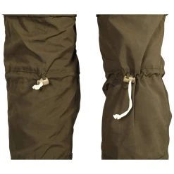 So bleiben deine Waden vor dornigem Gestrüpp gefeit. Die Hosenbeine haben einen Kordelzug, um die Gamaschen auf Wadenhöhe zu halten und einen Haken zur Befestigung an den Stiefeln. Zusätzlich gibt es Ösen zur Befestigung der Schnürsenkel o.ä. an der Hose. An kühleren Tagen können die Zipper auf Kniehöhe auch einfach zur Belüftung halb geöffnet werden.